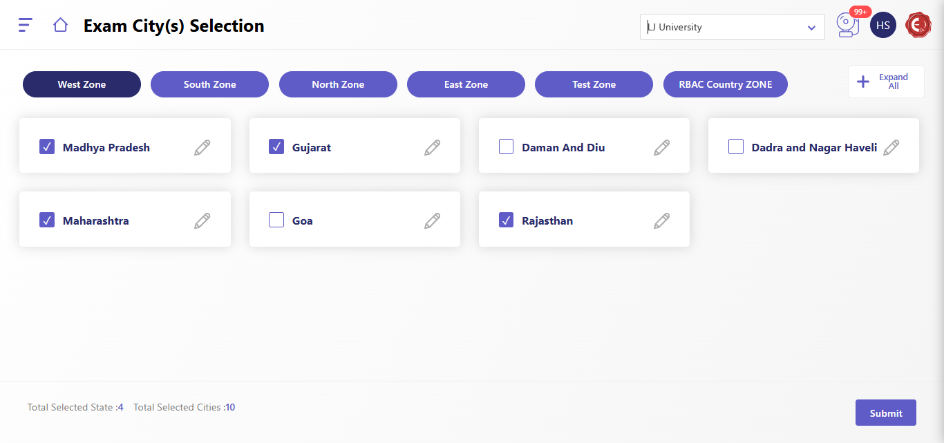 - Submit Selection: Once you have selected all desired cities, click on the "Submit" button to confirm your selection.