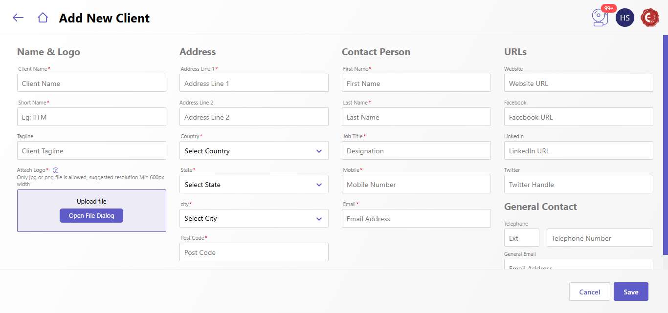 - Click Upload File to add the client’s logo (only JPG/PNG files allowed).