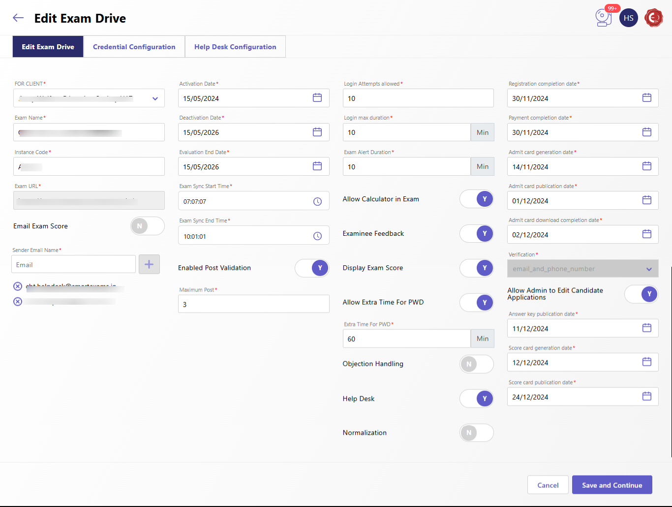 - Examinee Feedback: Toggle Yes/No to collect feedback from candidates post-exam.