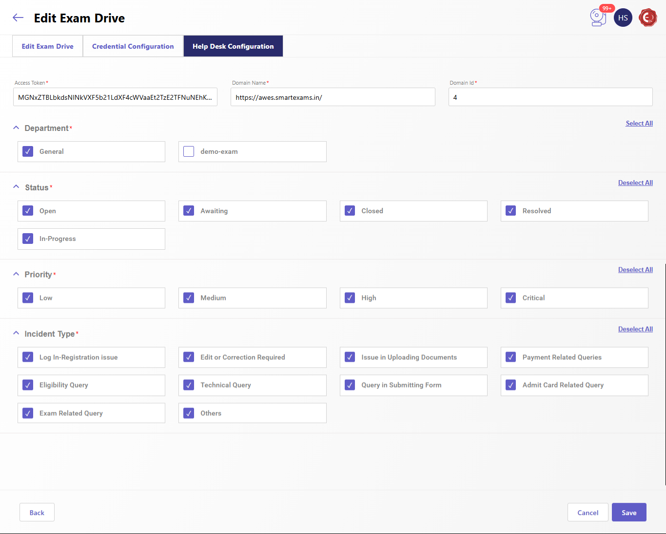 Credentials Configuration is used to define the credentials required for accessing the "Admit Card."