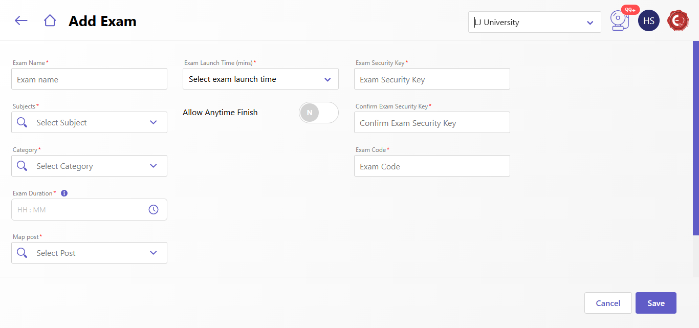 - Post Mapping: Link the exam to specific posts.