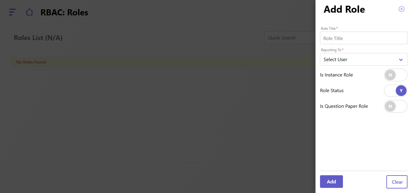 - Is Question Paper Role: Toggle Yes (Y) if the role pertains to question paper management; otherwise, leave it as No (N).